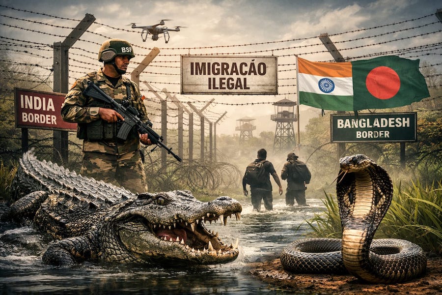 A Índia estuda a possibilidade de utilizar serpentes venenosas e crocodilos como parte das medidas de reforço da segurança na sua fronteira com o Bangladesh, numa tentativa de travar a imigração ilegal.